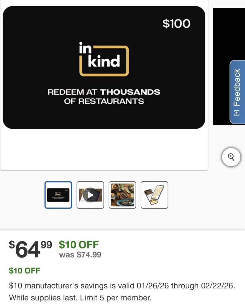 Costco $64.99买$100 inKind礼品卡Post published:01/26/2026Post category:Gift cardPost comments:0 Comments截至2/22。限购5张。 Tags: inkind Cancel replyYou must be logged in to post a comment.