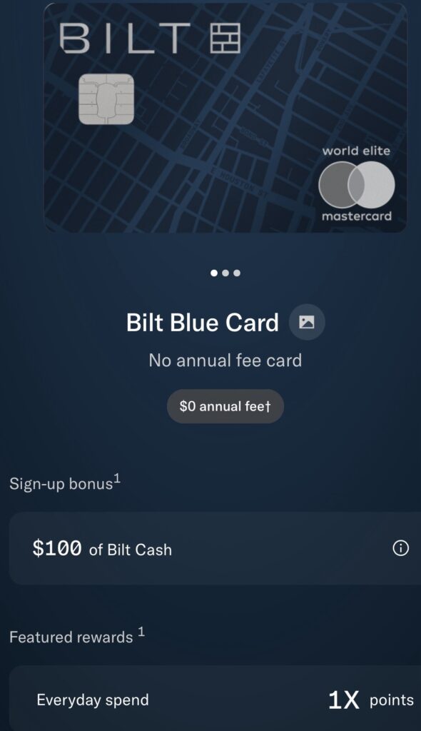 - Blue:无年费,开卡奖励$100 Bilt Cash